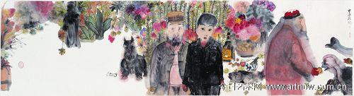 二十多年过去了,现在几乎可以说新文人画风已经成为水墨画界的主流风格。新文人画家人才辈出,也无需我再评述。我想说的是,一种艺术模式和风格一旦成为主流,初创时期的人文精神就容易被语言模式的惯性所淹没。在迅速商业化的情景中,朱新建式的人物造型和趣味,几乎影响了大多数人物画的造型方式。山水画中密密匝匝的点子皴法,大多滥觞于宋、元以及四王、黄宾虹的笔墨程式,在明的和暗的水墨画展览和市场中,到处是粗制滥造和陈陈相因的作品。“新文人画”中的实验和创造性,在大多数新文人画家的作品中,被自己“把玩”掉了。毫无疑问,近年水墨画界出现一股复古风。唐代的古文运动和西方的文艺复兴,都是借古张扬新人文精神的运动,但愿这股复古风能催生出大批有创造力的艺术家来。