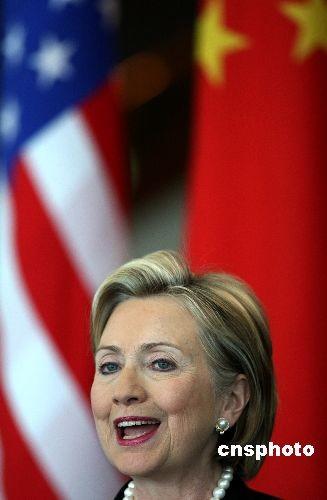 2月21日中午,美国新任国务卿希拉里·克林顿与中国外长杨洁篪举行会谈后在阳光明媚的北京钓鱼台国宾馆十八号楼四季厅会见记者,介绍会谈情况,并阐述奥巴马政府的对华政策。十年前,希拉里·克林顿陪同美国总统克林顿访华时到过十八号楼,故地重游不禁感慨万分。 中新社发 任晨鸣 摄