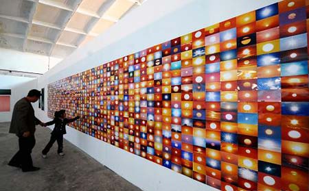 在平遥古城棉织厂展区,一个小女孩被展出的图片所吸引(9月20日摄)。 随着2009平遥国际摄影大展的举行,有着2700多年历史的平遥古城化身一座巨大的艺术展览馆,数以万计的摄影人和游客徜徉其间流连忘返。 平遥国际摄影大展从2001年创办至今,已经成为世界摄影人向往的摇篮和殿堂,9年来总计有17000多位各国摄影家带着7万余件摄影作品在此展出,国际摄影界的各种艺术流派竞相登场,向人们奉献丰富多元的精彩文化盛宴。