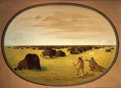 美国艺术家卡特林的画作,描述了印第安人正在射杀水牛