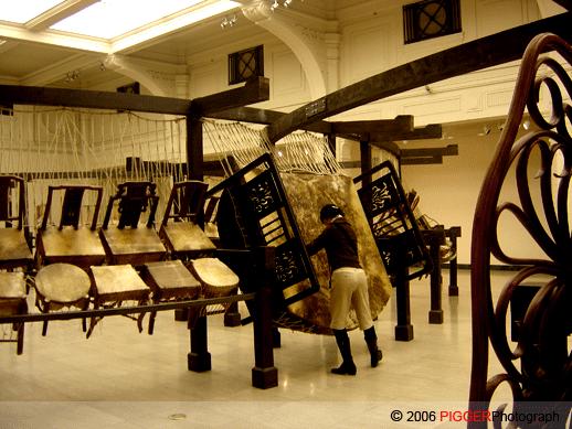 人们喜欢陈箴的作品,正是因为在执着而冷峻的哲学理念底下,总有着一丝温润通透而宽厚的情感,既帮助人看清社会现实的危机,又不致因困惑绝望而放弃。作品精妙的形式与深刻的内涵相得益彰,用上海美术馆策展人张晴的话来说,是“完成度极高”的装置作品。