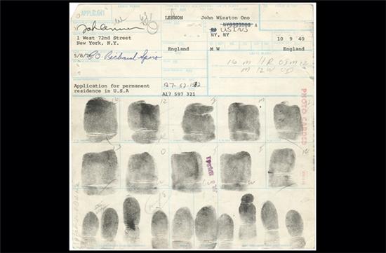 纽约报道——本周末即将迎来约翰·列侬的诞辰七十周年纪念,世界各地都把注意力放到了这位遇刺的披头士身上——美国联邦调查局也不例外,这个和列侬恩怨不断的执法机构昨天在曼哈顿市中心的一家公司查抄了一组他的指纹,这些指纹印刷品本打算进行拍卖的,预计可卖出10万美元来。在这些厚实的纸张上除了指纹本身,还注明了列侬的地址,西72街1号,也就是达科他大厦——1980年12月8日,列侬就是在这座大厦外被枪杀的。
