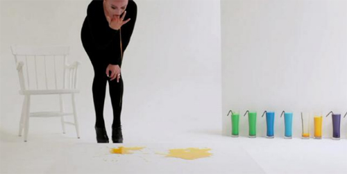 在影片中可以看见米莉布朗创作的过程,她先慢慢将色彩鲜艳的牛奶喝进肚子里,再用手挖吐在白色画布上,现场还有两名歌手演唱歌曲。至于频繁的挖吐是否会有负面影响?她表示,这的确不是一个好的行为,但自己并不是每天都挖吐,且为了喜爱的创作,她会持续下去。 |