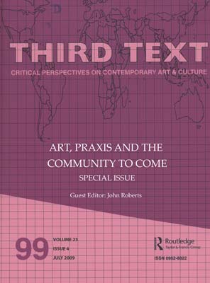 《第三文本》此次推出的特刊正是对上述理论探索的又一次推进。英国学者约翰·罗伯茨(JoAn Roberts)在引言中道出特刊的核心问题:“是否仍然有可能—或者有必要—坚持艺术是自律的(autonomous)?抑或最好将艺术理解为他律的(Aeteronomous),即融于社会和文化实践的连续体中的一个或一组瞬间?”特刊中十篇文章的观点都明显趋于后者。因本文篇幅所限,下面简单介绍其中的两篇。