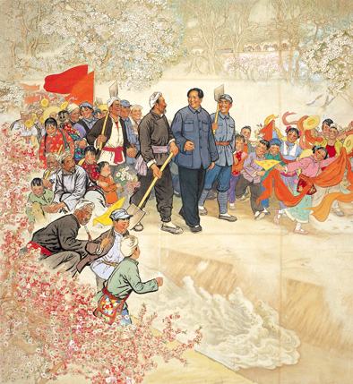 1973年文革宣传画《毛主席来到咱幸福渠》——人民美术出版社出版;