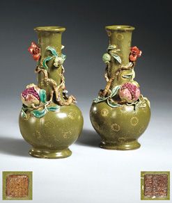 乾隆洋彩厂官釉榴开百子瓶(一对)