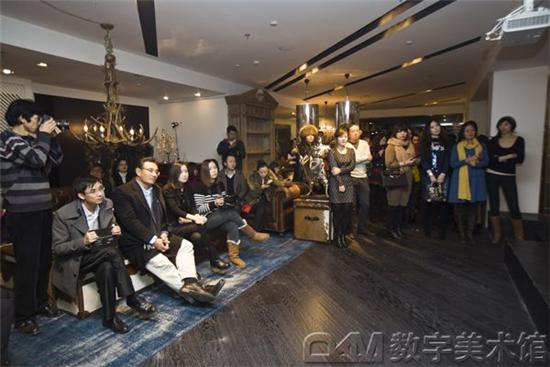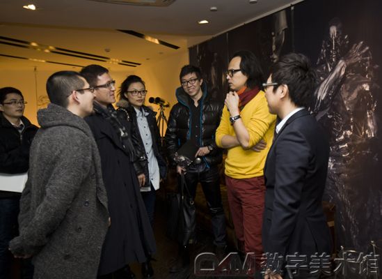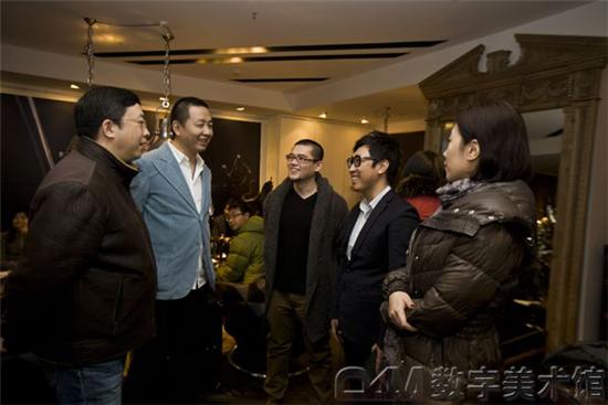 任哲(左三)与跨界中心倪景飞左二)在展览现场