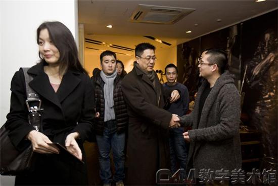 任哲(左一)与艺术家陈文令(右二)在展览现场