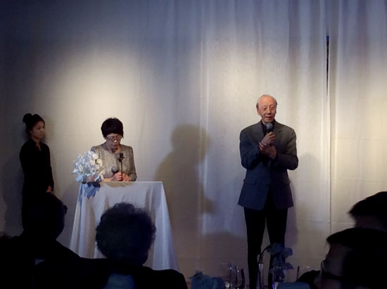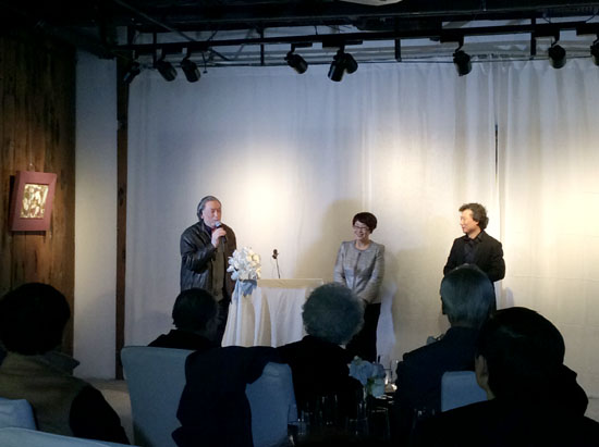 批评家贾方舟(左)致词、《美术》杂志执行主编尚辉(右)