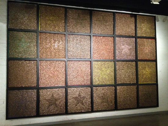 艺术家艾松依然沿用了“铁刺绳”这种极不亲和的材料贯穿其全年的创作。装置作品《为人民服务》和体量近九米、重约3吨的大型装置《X9战车》,《X9战车》是艺术家耗时半年的呕心力作,通过对中国当下的审视和阅读,“谎言”及“暴力”传递出艺术家对社会体制的忧虑和绝望,艾松说,这两件作品可能是他“政治呓语”(系列)的终结。以“24节气”命名的五星系列装置作品,以及和平鸽系列的3件新作品,还有一批以人物为题材的架上雕塑作品……。“24节气”是艺术家去年创作的装置作品“充满象征物的背景”的升华和延续,而和平鸽系列则采用了新的贵金属电镀工艺,从而给“和平鸽”赋予了新的意涵。