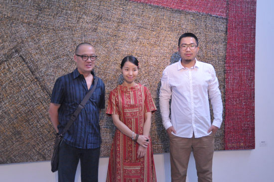 艺术家宋昱霖与展览策展人齐廷杰(右)、艺术家杨千合影