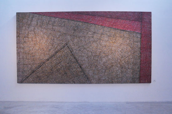 密密麻麻的颜料像毫无头绪的线条规则有序的蔓延在画面上,在这密实的让人找不到尽头的天罗地网中,人的个体生存变得越发微弱,艺术家宋昱霖以一位极度认真和理性的思考者身份介入当代艺术的创作中。从早期灰色调的平涂转入线条组成的网格世界,艺术家把这个过程看做是对自己的不断否定与破坏,通过反复的覆盖与勾画,把预先设置的画面底稿侵蚀的面目全非,随之而来的是一个崭新的主体,艺术家在颠覆的过程中亦逐渐寻找到了新的感情出口。而那些淹没在线条中的形象也慢慢让每一个观众看的更加清晰。