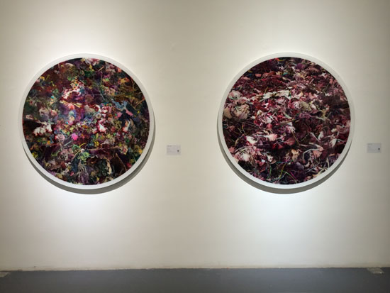 展览现场史国威作品《祭1》(左)、《祭2》(右)
