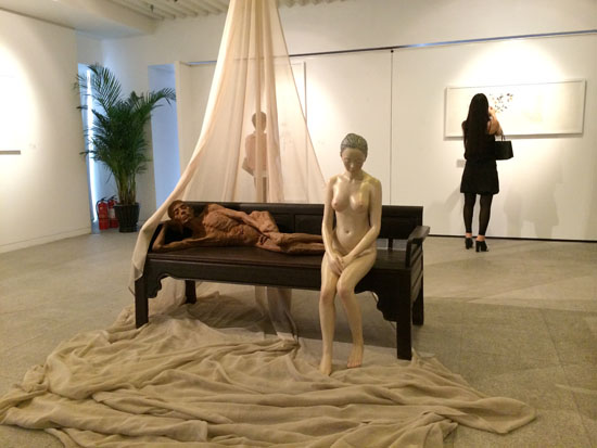 王艺展出作品《梦回魏晋》(前)《舞乐图》(后)