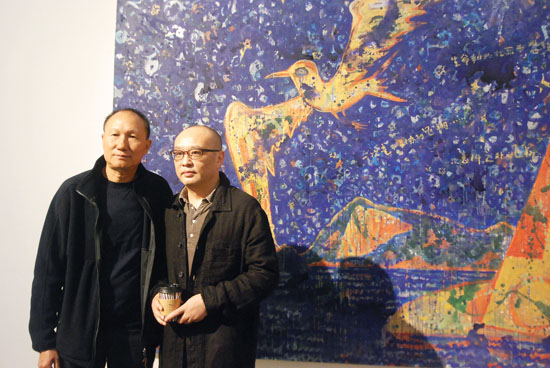 艺术家毛旭辉(右)与批评家栗宪庭(左)合影