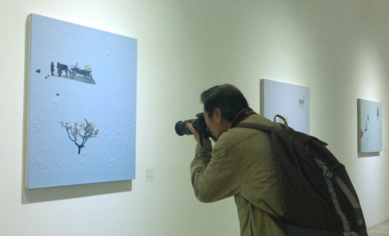 久画廊余欢子(中)与参展艺术家许果(左)、靳军(右)合影