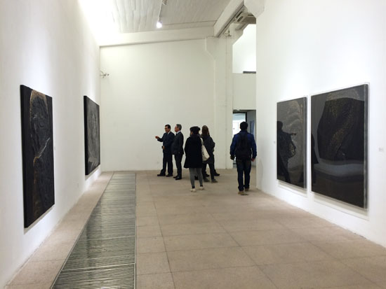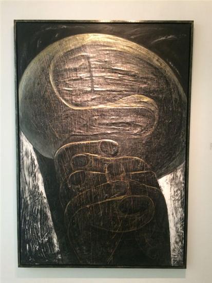 金佶煦长期工作生活在韩国大邱,近几年在北京设立工作室。大邱静谧的现代田园生活、深厚的佛教传统,以及日益国际化和多元文化的北京,成为他创作的主要给养。近几年的创作以黑色大漆为材料,通过在画布上不断研磨,使画面呈现出黑色厚重的浮雕感,试图描绘理想的当代贤者之像,末了却是空悲与无奈。