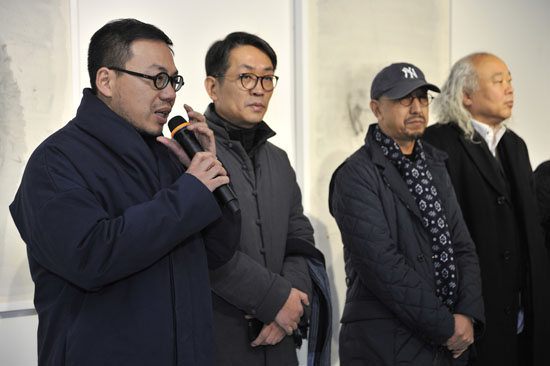 开幕嘉宾合影左起:哲学主持夏可君、艺术家张羽、刘旭光、姜吉安、