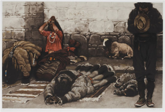 观众驻足艺术家陈丹青《朝圣》作品面前赏析