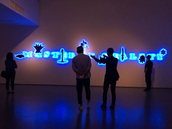 外国友人在艺术家黄颖《看图识字之教你如何正确地被百度消解》作品前欣赏