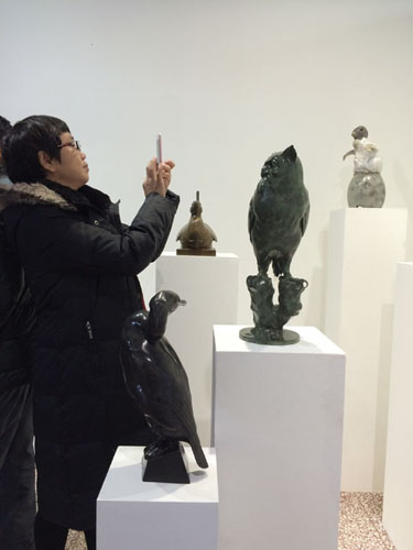 观众驻足艺术家刘立国作品前拍照