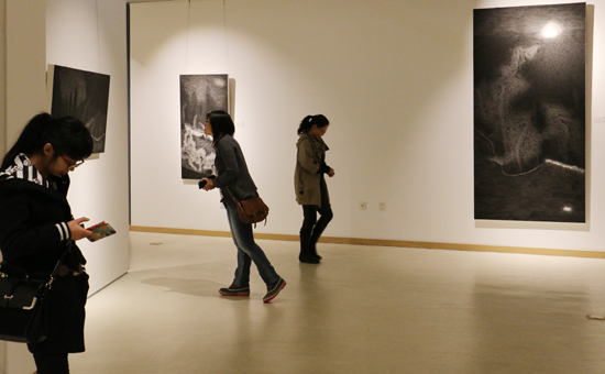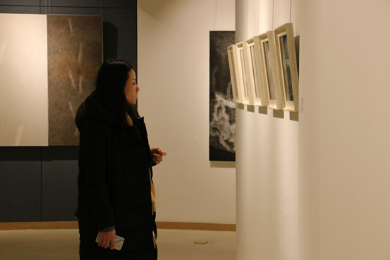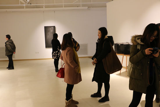开幕现场 观众驻足艺术家和永生水墨作品面前赏析