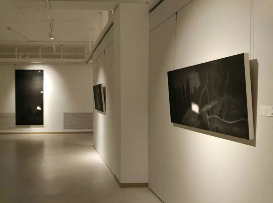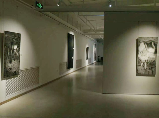 展览现场展出艺术家和永生水墨作品