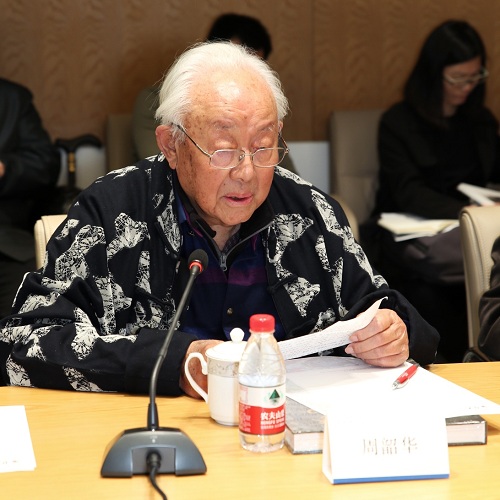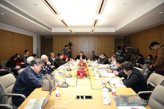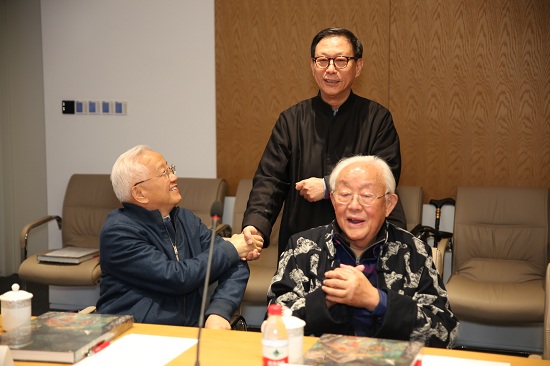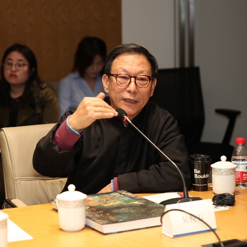 研讨会首先由周韶华发言,发言中他谈到何海霞的慧眼慧心,善于抓住历史的重要机遇,是造就他成功的关键所在。从随父学书法,入手《芥子园》,16岁在琉璃厂拜韩公典先生学画。再到1935年,拜张大千为师,遍游名山大川,目识心记,并且是青出于蓝而胜于蓝,巴山蜀水之行,为他翻开了传统中国画的新篇章,使他的画风开始向现代气息转变。1956年与石鲁、赵望云共创长安画派。他把古典画风转变为创新的新型画派,闪耀着黄土高原的泥土气息和延安精神,开始了艺术创新的新征途。70年代末,艺术家走进创新的广阔天地。潘洁兹先生称赞他是画坛“全能冠军”,周韶华则认为何海霞是“金碧青绿山水第一人”。