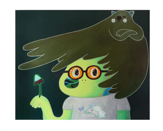 艺术家李沐霖的作品摆脱了当下大多数潮流艺术作品的简单符号化趋势,有着独特而难得的叙事性,又略带着一些戏剧化的人物场景。在这个眼花缭乱的移动社交和文化快速迭代的时代,李沐霖在创作中让这些不同时空和维度的图像及主题元素在画面中交错与融合,形成一种特有的时尚和治愈气质。而潮流艺术本身就是将流行的趋势和动向以艺术的各种形式表现出来的,时值“后疫情时代”治愈感成为艺术在当下时代的力量,近年的超扁平主义的萌系绘画、二次元文化与艺术家李沐霖的作品系列相契合,他的作品还调侃和搞怪了很多IP形象,甚至大胆的选择鲜艳的荧光色,并且通过勾线为作品主角增加与原本画面中不一样的表情与情绪,充满了视觉冲击力,给人无尽的想象空间。