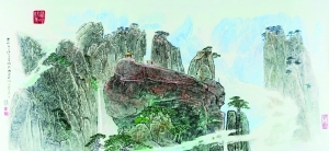 王锡良 粉彩“黄山四千仞”瓷板⊙本报记者 邱家和