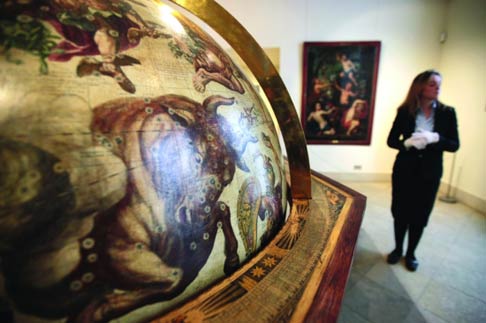 2010年1月14日,英国伦敦,宝龙拍卖行的工作人员在为“绅士的图书馆”拍卖活动做准备。此次活动的拍卖品来自世界各地,既有19世纪的唐宁街路牌,也有冰河时期的洞熊骨架。