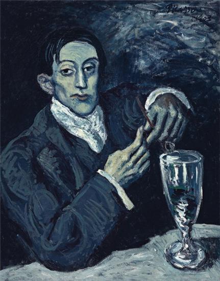 巴伯罗‧毕卡索( Pablo Picasso, 1881-1973),1903年作品《喝苦艾酒的人》(Portrait of Angel Fernandez de Soto)