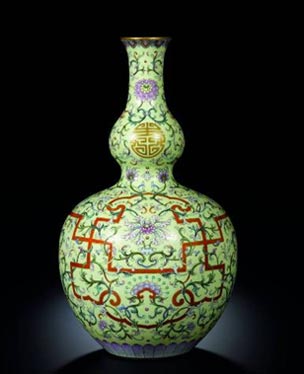 新华网香港10月7日电(记者 吕诺)在香港苏富比7日举行的中国瓷器及工艺品拍卖会上,一只清乾隆浅黄地洋彩锦上添花“万寿连延”图长颈葫芦瓶经过足足45口叫价,最终被香港收藏家张永珍收入囊中。中国瓷器及工艺品拍卖世界纪录由此改写为2.5266亿港元。