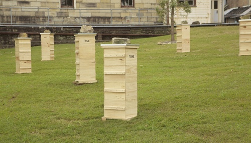 阿历克斯·芬雷《蜂群(ASX)》,2012,木制蜂房,声音。第18届悉尼双年展鹦鹉岛展区。创作团队:Chris Watson (蜂房录音), Jamie Allen and Bernhard Garnicnig (声音和数据)