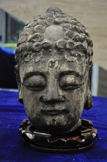 | 价值一万元的石佛头是公安干警汪某为自己的升迁调动送给文强的。2004年,重庆大足石门山摩崖造像两尊石刻佛头被盗,警方接到报警后立案侦查。只是案子始终未破,佛头自此失去踪迹。2009年8月,专案组人员在文强别墅里“找到”了一尊失踪逾5年的佛头。 |