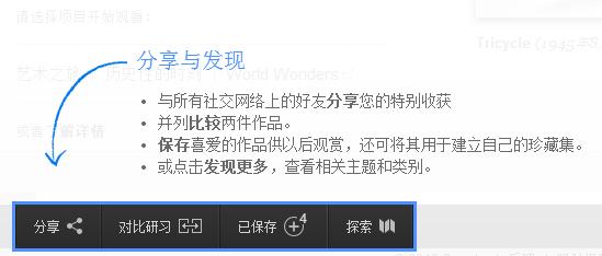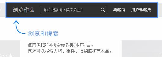 1、浏览&搜索工具:点击“浏览”发现更多的分类或项目,或“搜索”更多人物、事件、博物馆或者艺术作品。按照艺术家姓名、艺术作品、艺术类型、博物馆、国家、城市和收藏等类别浏览网站内容。