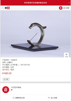 今日艺术网“微店”并非平地而建,它一开始就立足于“巨人”的肩膀。依托今日美术馆的学术视野,以国内最大规模的“生活美学”艺术品旗舰店“今日艺术汇”为后盾,“微店”力求在文创商品的种类规格、美学品质、文化含量等方面达到高度的专业化、国际化。使每位买家在消费艺术“产品”的使用价值的同时,对该件艺术“作品”的文化价值进行审美与把玩,从而提高生活趣味与美学修养。