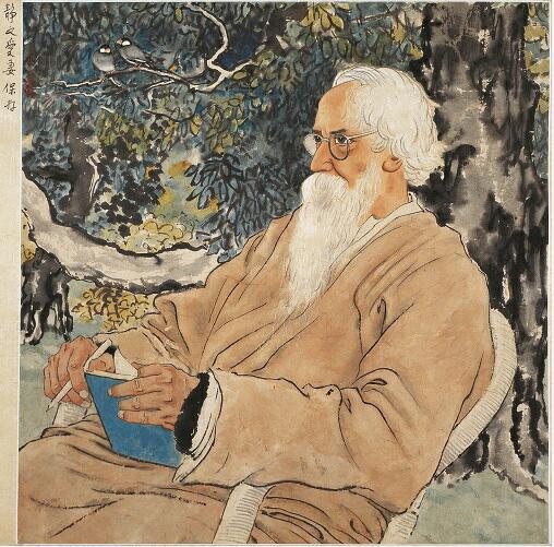 《泰戈尔像》1940年 51x50cm 水墨设色纸本立轴 徐悲鸿纪念馆藏