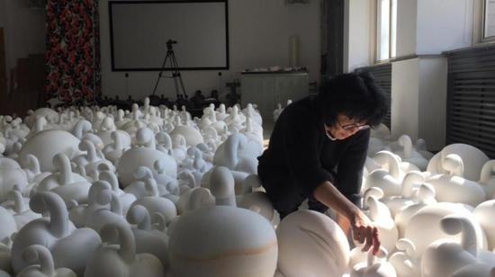 2005 年-2018 年,潜心创作“苹果”系列作品——陶瓷苹果、玻璃钢苹果、纸上绘画苹果万余件