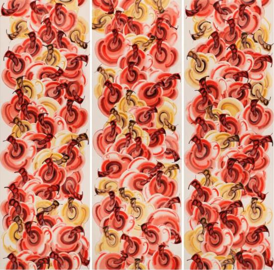 《大苹果 NO.128-139》十二联 董枫 纸上水彩 270x90cmx12 幅 2014 年
