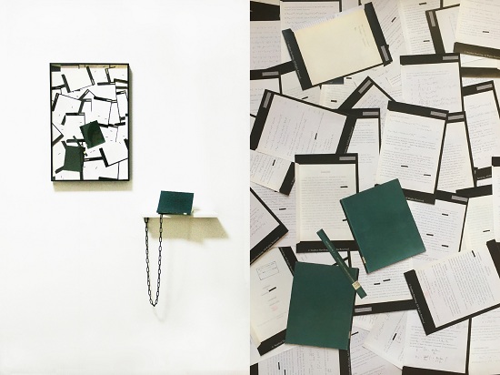 装置作品《黑方块》中,论文中的“Universe”被艺术家用黑色遮盖,论文的内容不再完整。“2017年10月23日(当地时间),霍金第一次在剑桥大学的服务器上向公众开放他在1966年完成的博士论文,名为‘宇宙扩张的属性’,供大众阅读下载。在134页的论文内容里,我将‘Universe’遮盖,这像是个涂字游戏,在过程中‘宇宙’消失,沦为虚空,而论文的内容也不再完整。在这个破坏性的‘玩笑’中,算法顿时感到无助,理性丧失功用。”