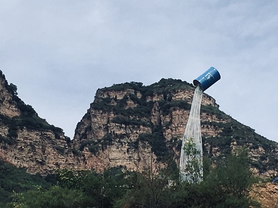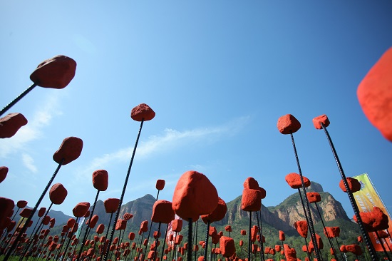 作品《天界·人》利用东太行群山环绕的自然景观,将作品置于大的环境背景之中,使之与周围的群峰峡谷产生对话,并在对话的艺术语境中产生延展性思考。