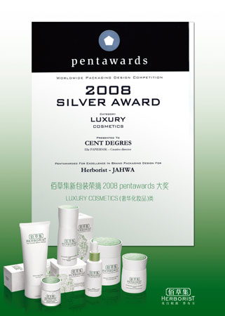 2008年,全球包装计划大奖pentawards的评审会上,佰草集全新包装形象清新明相,惊艳全场。依附对中西美学的创新融汇,佰草集摘得pentawards大奖的luxury cosmetics(奢华化妆品)类的银奖。