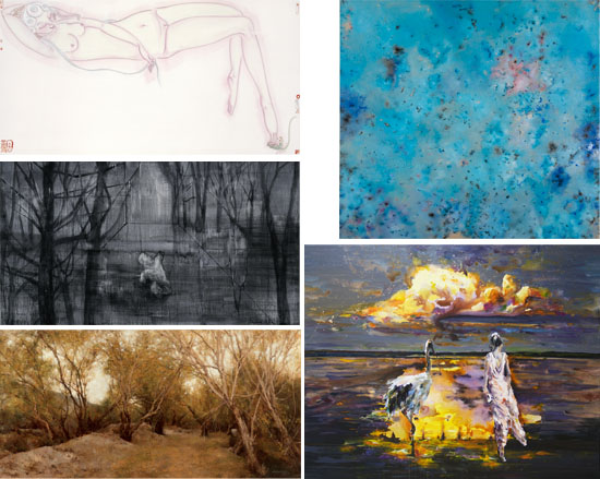 左上:白苓飞 左中:栗子 《第五类森林》 220×120cm 左下:罗敏 右上:蔡锦《风景13》 120×110cm 2008 右下:董春凤 《祥云》 200×160cm 布面丙烯 2013
