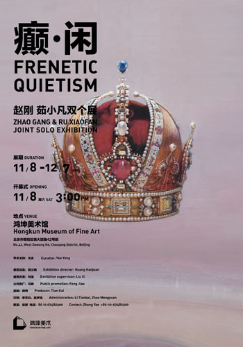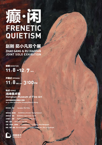 癫·闲——赵刚、茹小凡双个展 主 办:鸿坤美术馆 学术主持:尤永 展 期:2014.11.8 - 12.7(每周一闭馆) 开 幕:2014.11.8(周六)15:00 地 点:鸿坤美术馆 北京市朝阳区西大望路42号院