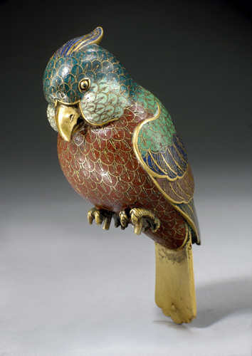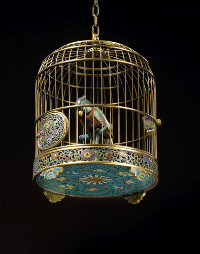 此外,一件清乾隆掐丝珐琅鹦鹉连雀笼,亦由Eskenazi Ltd以超过原先估价约30倍的2,048,000欧元投得。其制作极为精美,鹦鹉造型生动,色彩绚丽,层次分明;鸟笼设计细腻巧妙,装饰华丽,是难得一见的珍品。