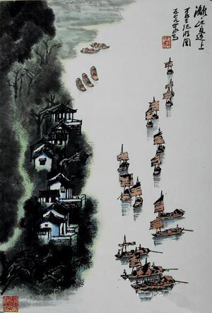 近现代书画专场,依然不乏齐白石、张大千、吴昌硕、李可染、黄胄等大师的艺术精品。齐白石的《群虾图》、《青苗螳螂》、《荷花蜻蜓》等都是不可多得的佳作,其中的《荷花蜻蜓》曾参加集古斋1990年在香港中环都举办的“庚午新春书画展”。李可染的《漓江边上》也是一件不可多得的佳构,著录于2000年人民美术出版社出版的《中国美术家作品丛书•李可染》。《漓江边上》是漓江画面的一处截景。此幅较之其他同题材作品更为大胆之处是于画面右侧作大量看似留白的漓江水景,与左侧浓墨色块形成强烈对比,将山体的深度感和博大感置于画面之外,而气势则渗入画面之中,十分独到。众多小帆船在江面上游弋,景物显得更为空灵和剔透。李可染“漓江”作品一直是市场的“宠儿”。但凡精品一出,动辄就是几百万的成交价,而今春内地拍场,李可染创作于1977年的《漓江胜景图》就以1518万元成交。墨气淋漓的“漓江”题材作品既是李可染山水画的经典代表,也是中国山水画发展的重要里程碑,具有艺术和市场的双重价值意义。