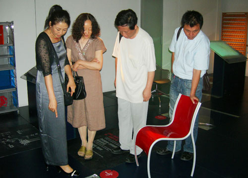 天津工业大学艺术学院马静副教授、许正力副教授、解基程院长和金百洋教授参观今日美术馆正在展出的“设计之都米兰制造”展