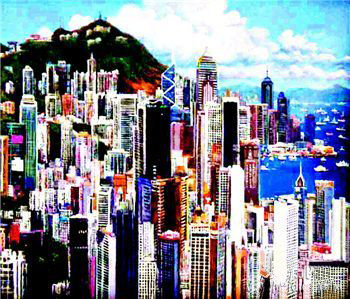 对于充分表达油画艺术的精髓,香港艺术家更有着得天独厚的发展土壤。那些与这座城市一同成长并结下不解情缘的艺术家们,更是走在了艺术的前沿。香港城市的气质需要艺术创作的包容,油画艺术作品在这里找到了归属。“回归”(见图二)油画艺术作品恍若进入时空隧道,历史和现实在这里交织和延续。这就是颇为独特的香港国际大都会和它的未来。