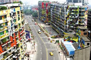 偏安于重庆主城一隅的黄桷坪一直是工业与艺术的集合地,这里有重庆重工业基地的痕迹:码头、电厂、烟囱,也有闻名全国的四川美术学院,这种奇怪的组合造就了黄桷坪:虽是重庆旧房最集中的地区,却拥有重庆最前卫的新新人类。当旧城改造的风潮吹到这里的时候,大胆的黄桷坪艺术家们大玩了一把MIX,将街头文化的涂鸦与城市建设来了一次完美的混搭,于是就诞生了中国第一条涂鸦艺术街。